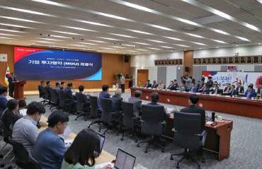 당진시가 충남도청에서 열린 ㈜아이디씨당진제일차, ㈜건지이엔지, ㈜NI스틸, ㈜삼윤의 4대 기업으로부터 총 2조2155억 원 규모의 투자협약을 이끌어 냈다.